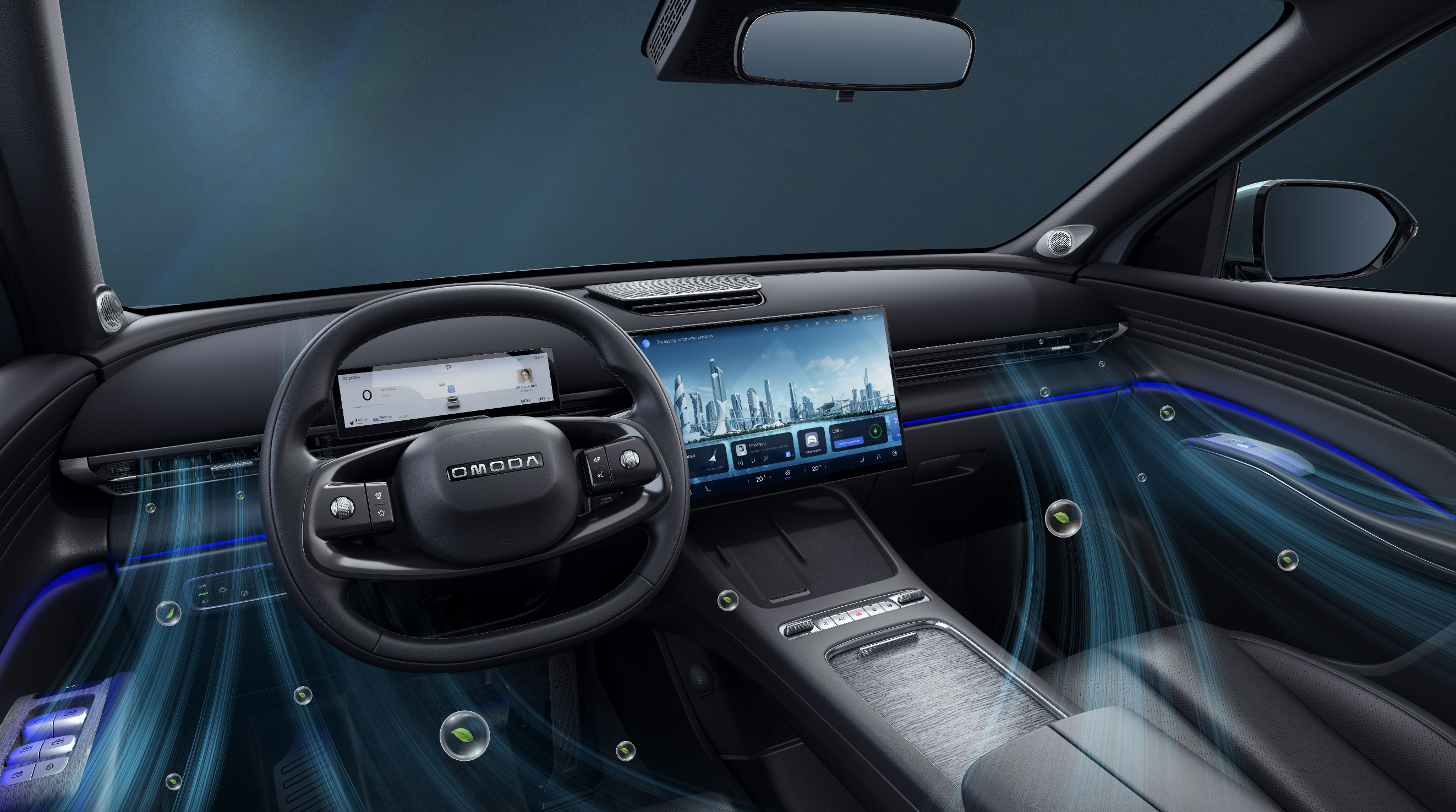 El interior del OMODA C7 combina lujo y funcionalidad, con un habitáculo VIP silencioso para máxima comodidad en cada viaje.